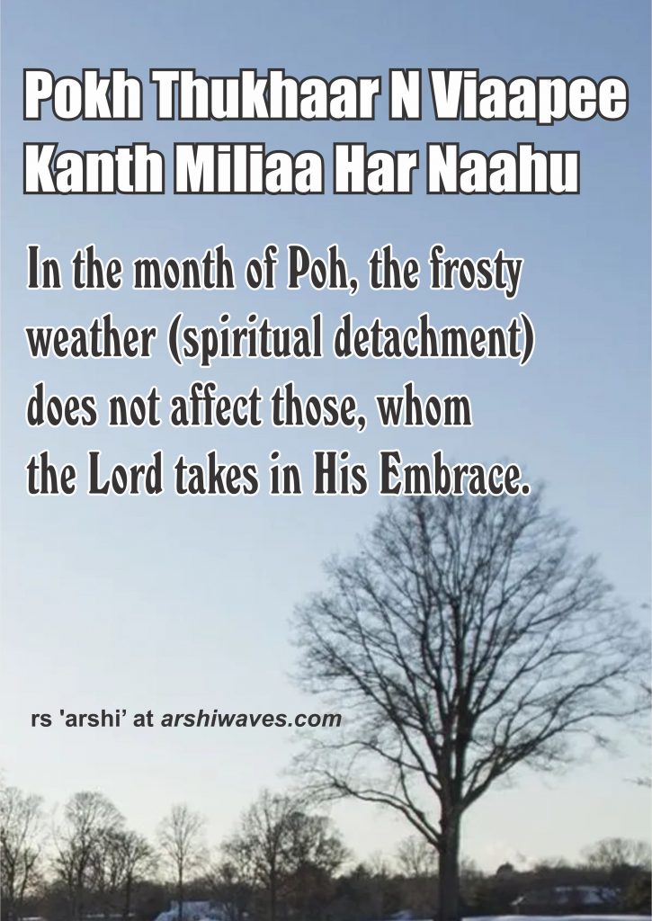 In the month of Poh, the frosty weather (spiritual detachment) does not affect those, whom the Lord takes in His Embrace. (135)